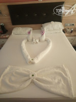 Отдыхали с парнем(вскоре мужем)))) в этом чудном отеле. Приехали рано, в 10.00. Т.К. в Турции не в первый раз дали $$ на ресепшене, заселили сразу))) Жили на 4 этаже, по нашему на 6, т.к. первый холл, второй ресторан. Вид из номера шикарный угловой на море, аквапарк, гору, номер трехместный. Убирали каждый день, оставляли шоколадки, сделали розочки на постели, красиво). По питанию все норм, мясо было каждый день разное, фрукты, овощей много, голодный не останешься, только завтрак скудноват. Море красивое, вкусно пахнет)))) Обожаю средиземное море..... Бар на пляже есть, напитки наливали с норм бутылок. сок- юппи. По спиртному-обыкновенно, пиво эфес, раки,джин, мы накидывали коктейлями)) Заход в море не очень, но у нас были коралловые тапочки не резиновые, а из ткани. поэтому вход нам был безразличен. Отель чистый, пляж так себе. Арендовали велики 3 раза, катались по Алании, ездили к красной башне, на пляж клеопаты ездили. ехали с хорошем настроением и большой любовью)))) Спасибо отелю за чудный отдых в этом году. всем советую.