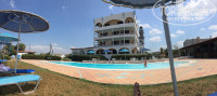 Лежаки для пляжа нужно брать у бассейна и относить обратно. Зонтов на пляже нет. Матрасов и пляжных полотенец тоже нет. Так как отель расположен на границе города и курортного местечка Амудара, толща территорией отеля делать почти нечего и идти некуда. Все туристические магазинчики и многочисленные таверны находятся примерно в 1 км от отеля если идти в сторону труб местной ТЭЦ.