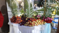 Питание хорошее, выбрать всегда можно, много мяса, рыбы. По субботам рыбный день, жарили крабов, мидии. Вкусные овощи в кляре, блинчики, пончики, пицца. Фруктов сначала было мало, только арбуз и дыня, потом появились персики, слива, виноград. Очень вкусные сладости и десерты, мороженое каждый день в обед и ужин. Воду всегда можно взять в баре, в бутылках. На пляже бар — одно название. Только вода и газировка. Но с гордым названием «Bar All inclusiv". Был еще платный бар, мы не пользовались.
