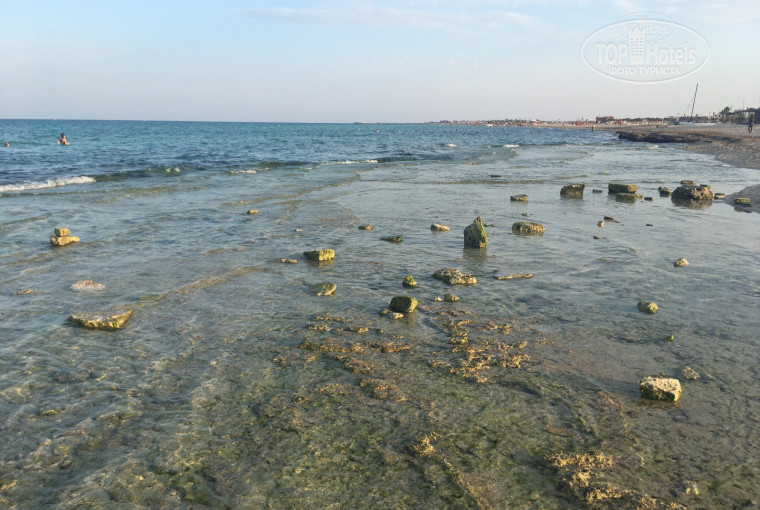Самое печальное- это пляж, не знаю сезонное ли это явление, но водоросли.. чёрные .. вперемешку с мусором.. и на берегу и в воде.. Когда нет волн и во время отлива, можно пройти по камням (природная плита) и за ними будет прекрасное море с идеальным песочком. В итоге, ходили на пляж соседнего отеля (купаться), но это достаточно далеко от лежаков.