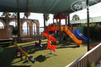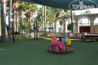 Две качели на цепях, одна с лавочками, одна карусель, две качели-балансир, лазалка с горками, две лошадки на пружинах. Детей там вечером тьма! Площадка не закрытая, тоесть забор есть, но есть два выхода открытых, дети могут убежать сами. Мониторили их там постоянно, наша чуть не потерялась, невозможно уследить в такой толпе. Детская комната была все время закрыта, возможно работала несколько часов пока мы спали)) ниразу туда не попали. Очень не понравилось, что туалеты М Ж и детский находятся прям около детской площадки и имеют свободный подход тетей, несколько раз ловили своих забегающих в мужской туалет, как-то не гигиенично это.