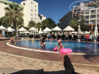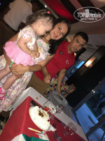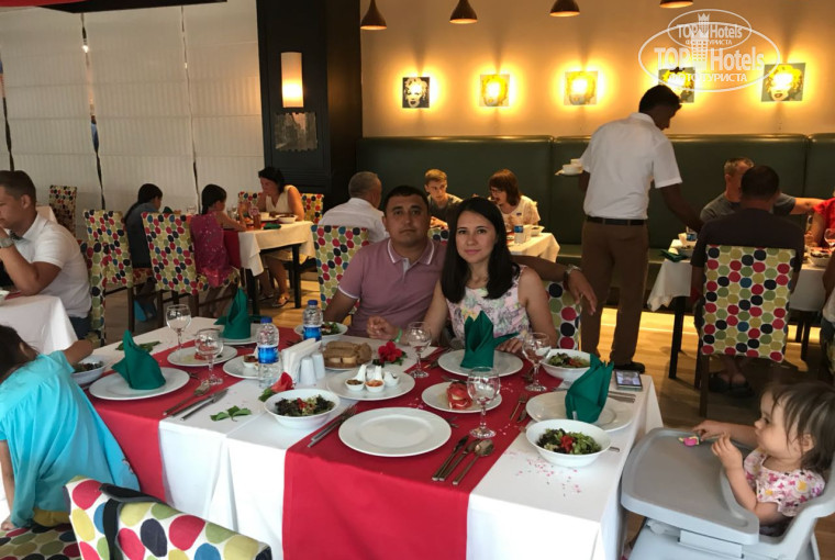 Доброго времени суток. Отдыхали мы с семьей: я, муж и двое маленьких детей 4 и 1,6 года.По приезду заселились в 11.30 ч. утра в наш номер с чудесным видом на бассейны и море! Питание здесь более менее разнообразное. На завтрак: омлеты, яйца вкрутую, панкейки, каша рисовая. На обеды из мяса: курица, рыба, баранина, кебаб.Еды полно. Из фруктов: яблоки, апельсины, инжир, виноград, персики, арбуз, дыня, груши.Соки малышам лучше брать с собой. у младшей дочки тоже пошла аллергия на эти соки из автомата(а все привезенные запасы были выпиты в первые два дня).Пляж хороший.Минусом было неспокойное море.Большие волны. Дети боялись заходить. Они предпочитали купаться в бассейне. Вход в море относительно резкий. Через 2 м. уже глубоко.Но это к отелю не относится.При отеле есть спа-процедуры.Мне лично все понравилось.Из анимации: для детей каждый день вечером дискотека.с 21.00 до 21.30 ч.Далее до 23.00 анимация для взрослых. Была пенная вечеринка у бассейна. Один раз была мексиканская тематика на ужин. У входа в ресторан стояли мексиканцы. Пели , танцевали. Наливали текилу и в ресторане в тот вечер была мексиканская кухня. Выбрали посещение ресторана а-ля карт с итальянской кухней. Неплохая кухня. Там же я отмечала свой день рождения. Туда и вынесли торт для меня со свечками. Всем именинникам сервируют стол и выносят торт.Отель по общим впечатлениям на твердую четверку. Рекомендую для семей с маленькими детьми или более старшему поколению.