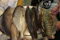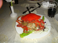 Отдельный разговор о ресторане. Сказочный ресторан! Готовят отлично. Причем приготовят вам абсолютно все, что вы хотите и как хотите. Все морепродукты свежайшие: у хозяина есть 4 своих рыболовных судна, так что к столу подается все самое свежее. Крабов, лобстеров приносят к столу живыми, потом готовят для вас тех из них, которых вы выбираете. Вкуснейшие креветки, огромные просто, королевские. Нашим мужчинам хватало по одной, чтобы поужинать, хотя мужчины все немаленькие. Если говорить о ценах на морские деликатесы, то по сравнению с нашими ценами- это сущие копейки: лобстер стоил 1500 рупий (1 рупия=0,70 руб.), креветки 2 шт- 1800 рупий, краб- 1800 рупий. Есть одно "НО", обязательно проверяйте счет, прежде чем его оплатить. Так, на всякий случай! Официанты вроде и пытаются обслуживать быстро, однако особо расторопными их не назовешь. Но были и исключения: 1) Бобби- парень с лицом хулигана, очень шустрый малый! Просто умница. В конце нашего отдыха он уже, кажется, наши мысли научился читать, с полувзгляда все понимал; 2) Кумар- взрослый мужчина, очень ответственный, активно учит русский язык, причем очень успешно. Обслуживал нас также очень быстро, не приходилось просить по несколько раз.