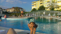 Отдыхала в июле. По прибытию в отель, заселили сразу, номер на самом верхнем этаже (как я люблю) с боковым видом на море! На ресепшене был русскоговорящий песонал. Номер просторный, шампунек-гелей было достаточно, сейф бесплатный.. Питание: вкусно все, но мяса практически не было (особо не огорчило), официант меня помнил, без просьб наливал то вино, которое надо, и в конце чай. 1 Российский канал, убирали чисто каждый день! Все дни, за исключением 1-го был шторм! Шезлонгов и у бассейна и на пляже хватало всем! Вход в море - капец! Огромные валуны и плиты! Это единственный минус! 3 бара: у бассейна, лобби, на пляже! Территория небольшая, уютная! Кто любит тишину и релакс - понравится!
