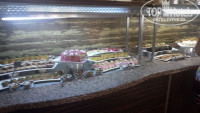Питание лучше среднего в этой ценовой категории - на обед/ужин ежедневный выбор из курицы-индейки-рыбы в разных вариантах (6-8 позиций горячего), есть детское/диетическое меню, в основном, насколько я заметила, отварные овощи и курица или сосиски. Иногда бывает мясо, сильно напоминающее консервированную тушенку. Есть гриль, но очередь к нему абсолютно не радует, в итоге не знаю, что именно на нем жарят. Неплохой набор десертов, но, к сожалению, довольно однообразный. Есть пахлава. Горячее пополняется, десерты - нет, поэтому европейские разбирают в первые полчаса-час. На завтрак ежедневный выбор из яичницы/омлета/французских тостов/блинчиков + стандартный турецкий набор овощей-оливок-топпингов-сыров-колбасы-булочек. Замечала, что есть какая-то каша, но не помню, каждый ли день.