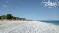 Пляжная полоса широкая, места хватало всем. Море Чамьювы прекрасно - мелкая галька, быстрый набор глубины (в пяти метрах от берега уже по шею), прозрачная вода. До пляжа от отеля 3 минуты. В баре вода-кофе-чай-софты-пиво, закуски, один час - мороженное, очередь за которым начинают занимать примерно за полчаса до выдачи.
