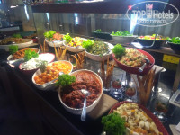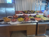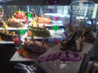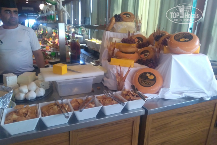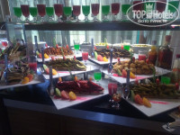 3. Еда. Еда на уровне фото одного из ужина прилагаю. Разнообразие и качество. Раков не было, хотя ждал. Один день были роллы, но они были не вкусные, более того отвратительные. Фруктов много (завтрак, обед, ужин) и пополнялись всегда, очереди были только за блюдами, которые готовились индивидуально под отдыхающего, например на завтраке это был омлет или блины. Некоторые блюда на ужине не пополнялись, это различные закуски, которые были выставлены в начале ужина, например бокалы с креветками в соусе. Разнообразие мяса и рыбы вплоть до семги (лосося). Есть детский стол, я даже сам иногда с него ел, там была отварная говядина, курица без специй, ну и всякие рожки, кашки и т.д. на улице возле бара с 14.00 до 17.00 было мороженое, очередей за ним особых не было 2-4 человека. Мороженое вкусное, не вода. В целом оценка 5 из 5.
