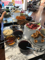 Посуды не хватало за завтраком, чашку взять сложно,чтобы сделать чай.были дни, когда на завтрак женщина стояла и жарила типа блинчики, только блинчиками это сложно было назвать,стоял ужасный запах масла, такое чувство,что на одном фритюре жарят и курицу и блины и картошку......были дни когда жарили омлет, только омлетом не назовешь....берут яйца разбивают ,перемешивают и выливают на сковороду ....и это омлет!!! никаких добавлений....ни молока....ни ветчины....вообще ничего..ни зелени....