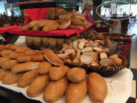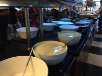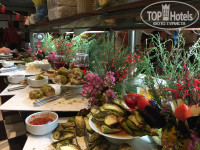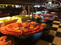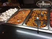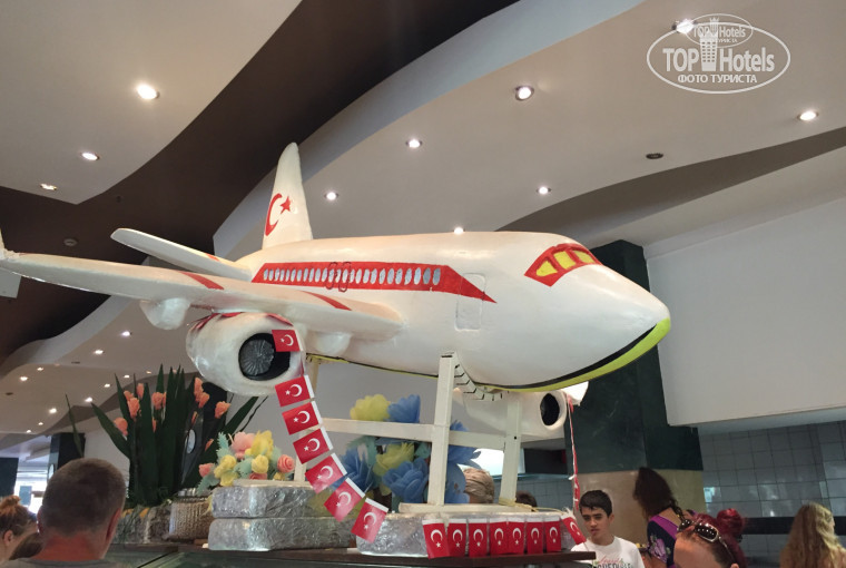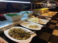 Придя с утра на завтрак выбрать было нечего. Дикая очередь у автоматов с кофе. На улице через день жарят блинчики и омлет, но в то утро ничего такого не было, об этом мы узнали только на следующий день. На обед ассортимент получше: множество сыров, колбас, сосисок(соевых, конечно), овощи(кукуруза, брокколи, горох и морковка отварные; помидоры, огурцы), много зелени, салаты, хлеб о-о-очень вкусный, а также лаваш(дочь была в восторге). Супы каждый день повторяются(на завтрак, обед и ужин): томатный и какой-то овощной суп-пюре. Курица в разных вариациях каждый день, два раза даже давали котлетки из баранины на гриле и говяжий язык, никогда подобного в других отелях Турции не встречала, очень вкусно! Конечно же, картофель фри, за которым на ужине дичайшая очередь. Давали наггетсы в снек-баре.