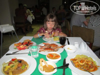 5. ПИТАНИЕ. Голодным не останешься! Довольно разнообразное показалось с первых дней, но через 4-5 дней чувствуется некое однообразие в питании,хотя всегда можно найти для себя что поесть. Еще заметил что почти во всех продуктах присутствуют острые специи,наверное это особенность Египетского питания. Для детей есть детский уголок с детским меню. Еще хотелось бы чтобы в питании присутствовали морепродукты такие как креветки,мидии,осьминожки всякие. За 7 дней только один раз на ужин давали крабы и кальмары, хотелось чаще, все-таки Красное море богато такими малюсками. За время пребывания с расстройством желудка или каким-либо отравлением мы не столкнулись!