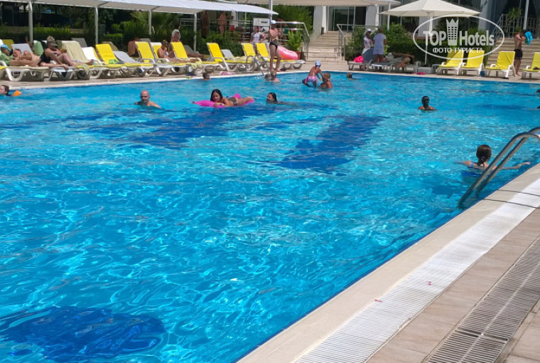 Всем добрый день. Никогда не пишу отзывы, но читая всякие глупости, уж очень хочется поделится своим мнением об отеле. Отдыхала с мужем и дочкой 11 лет. Приехали в отель утром. Заселение в 14.00, это была не новость и не проблема. Показали где можно переодеться, выдали пляжные полотенца и мы без всяких проблем пошли к бассейну. На море сразу не пошли так как ждали обед. Вещи оставляют все в холле, никто ничего не ворует если кто то переживает за свои вещи. Естественно ценные вещи взяли с собой (тоже думаю не проблема взять маленькую сумочку с документами и деньгами). Бассейн замечательный. Лежаков всегда хватало. Горку включают два раза в день с 11 до 12 и с 16 до 17. Для детей это рай (да и для некоторых взрослых тоже)). Часа вполне хватает чтобы накататься. Итак, мы искупались и пошли на обед. Еды много, разной. Овощи свежие, всякие травы, салаты, заправки к салату. Оливки, баклажаны, грибочки, сыры. Курица, печень, мясо, рыба. Еда разнообразная. Так как за раз вы все не попробуете, то можно чередовать. Сразу скажу о завтраке и ужине. На завтрак разнообразные хлопья с молоком, несколько видов меда, варенья, что то типа шоколадной пасты. Блинчики, яичница, омлет, несколько видов сыра (в основном соленый ) поэтому на любителя. Можно делать тосты с маслом сыром и колбасой. Тех кто пишет о плохой еде ( особенно о завтраке) хочется спросить неужели у вас дома более разнообразные завтраки?!)) На обед и ужин всегда картошка фри, нагетсы (для любителей). Вечером обязательно еда на гриле. Рыба, курица, индейка. Сладостей много, торты, пирожные, пахлава. Напитки- чай, кофе, горячий шоколад. Я пью только чай. Похож на пакетированный, но не проблема. Спрайт, кола, пиво, вино белое и красное. Спиртное не пью, ничего сказать не могу. Пиво пробовала, но я не ценитель пива (пить можно). В баре делают разные коктейли спиртные и детские. Вкус химический, но тоже пить можно)) В общем хочу сказать, что я достаточно привередливая в еде, и тут мне было что выбрать и я наедалась вдоволь. Из фруктов арбуз, дыня, слива, виноград, персики. В плане чистоты кто то писал о том что не сразу убирают столы, невозможно найти чистых вилок....ничего подобного! Мальчишки бегают как сумасшедшие меняют салфетки, выкладывают вилки ножи если где то чего то не хватает. Проблем с посудой не было. Никто конечно не натирает стаканы и тарелки до блеска, а кому это нужно тот пускай кушает дома)) . Номер дали в 14.00. Номер замечательный. Начитавшись отзывов, боялась что будет очень все плохо, поэтому были приятно удивлены. Все чисто, все работает, кондей дует холодом, фен-теплом, все как положено)) На кондее был таймер, можно было ставить на отключение, на ночь. Телевизор работал, но никто его особо не смотрел). Номер убирали каждый день. Пыль в белых перчатках проверять я как то не додумалась, как некоторые))) Полотенца меняли. Все очень прилично, никаких дыр и потертостей нет , как некоторые пишут. Балкон небольшой, развесить белье есть где. Пляж и море-сказка! Море теплое, чистое. Галька. Идти минуты три. В баре у моря напитки, лепешки, овощи. Мороженое в 12 часов но мы ни разу не брали. На море аниматоры предлагают пострелять из лука, поиграть в волейбол. Подходят практически к каждому и предлагают. Удивлена что кто то пишет про скуку вечерами. Каждый вечер дискотека, живая музыка, была пенная вечеринка. Вечером перед отъездом была обалде