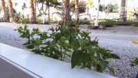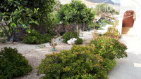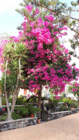 Территория отеля ухоженная, хоть и небольшая, вокруг отеля интересный садик с цветами, различными растениями и скульптурами. Есть небольшой бассейн с шезлонгами рядом.