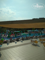 Два больших бассейна, один детский.. Огромная лужайка, детская площадка (но ей не хватало тени днем и освещения вечером).