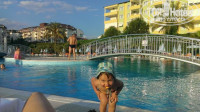 Отель выбирала по фотографиям, реальность превзошла даже наши ожидания! Неновый, но чистый, уютный красивый отель. Для нашей семьи с 2 детьми номер нам предоставили большой, и третья кроватка-манеж для малыша уже была в номере. На балконе вид на море. Кстати от отеля до моря только пройти от бассейнов справа по тропинке, очень быстро и удобно. В море есть минус это водоросли, но убирают территорию постоянно, лежаки доступны всегда. Аниматоры умнички стараются! Территория отеля небольшая, но компактная, множество мест для укдинения. Бассейны просто супер! Мои счастливы! Есть детский мини клуб с множеством развлечений. Каждый найдёт себе место препровождения и развлечение.