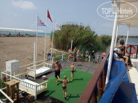 Возле центрального бассейна давали мороженое очень вкусное! За сутки рано утром с 7.30 делают запись на посещение ресторана Аля-Карт. Имеете право бесплатно посетить два ресторана. Турецкий обязательно и другой на выбор. Записаться сложно, тк количество мест ограничено. Так что советую приходить на ресепшн часиков в 7 чтоб записаться на следующий день. Мы ходили в Итальянский- восхитительно приготовлено мясо. Очень вкусное розовое вино и просто божественный десерт! Рекомендую. Бассейны чистые, с 20-00 плавать не разрешают по одной простой причине они хлорируются. Но мы плавали ночью, да хлоркой тело очень пахло, душем не смоешь! По поводу вирусов- мы слава богу не заболели хотя на горках воды нахлебались от души! И от других про вирус от чего не слышали. Алкоголь приличный! Пробовали коктели- над рестораном очень вкусные, виски приличный, шампанское и пиво вкусное. Пробовали красное вино- сухое, нам не понравилось. Началась изжога. Обратились к представителям туроператора, они всегда на втором этаже над рестораном. Умнички всегда выслушают и помогут решить вопрос. У них можно купить лиры. Они нам заказали лекарство от изжоги. Доставили через 1,5 часа на ресепшен- удобно. Море, ах море! Прелесть! Чистое! Ездили два раза в день часов в 10 и в 16-17. Всегда находили свободные лежаки под навесом! Полотенца на пляж меняли в спа, хоть два раза в день, проблем не было. Каждый день 18 начинают пляж убирать. Какой то ужасной грязи мы не видели! Да иногда попадались окурки в песке, но простите отдыхающие, вам что сложно бросить окурок в урну. А их там полно. За те деньги которые потратили на отдых в этом отеле, не стоит ожидать, что песок будут просеивать ежедневно! На корабликах накатались от души! Капитаны красавцы очень внимательные, уважительные. Детям дают порулить). Советую взять хлеб из бара на пляже и покормить рыбок с палубы корабля при отправлении. Это впечатляющее шоу) Аниматоры в работе с 10 утра. Всегда в настроении, на позитиве, стараются. Молодцы! Очень интересные анимации для детей. Вечером у пирса в амфитеатре вечерние шоу, потом дискотека. Дважды была живая музыка. Первый раз пела какая то) Валентина- неплохо. Второй раз какая то женщина имя не помню, не смогли досидеть, ушли, основное направление латинос и кое какие русские песни, но это ужасно! Что касается дискотеки, не плохую крутят музыку но много клубняка(. Прекрасную крутят музыку до начала шоу, но почему не включают ее на дискотеке(. Вообшем и в целом отдых удался! Мы остались довольны, конечно может потому что до этого отдыхали только в 4*, а может потому что закрываем глаза на мелкие минусы)) Желаю всем хорошего настроения на отпуск! Рекомендую этот отель. И спасибо всему персоналу за наш прекрасный отдых.