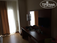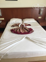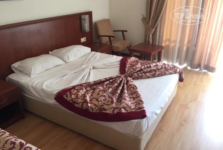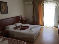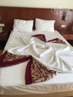 Номер хороший, чистый и просторный. Было пару косяков в виде торчащих проводов в ванной и подзатертой мебели, но главное всё было очень чисто. Прошлись салфеткой по всей мебели и не обнаружили следов пыли, даже за телевизором. Постельное и полотенца были немного подуставшие, но тоже чистые и в полном достатке. Маленькие телевизор с плоским экраном показывал несколько русских каналов. Холодильник холодил слабовато, но не шумел и все таки в большой степени справлялся со своей задачей. Все лампочки работали.
