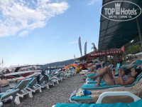 Второй-большой пляж закрыли, но мы все равно ходили туда, нас никто не выгнал.. Были там один раз... Пляж, который основной-маленький, но мы всегда в общем-то находили свободные лежаки. На пляже кроме душа нет ничего, ни туалета,ни раздевалки -НИЧЕГО. Море чистое.