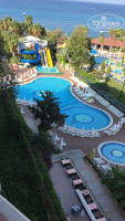 Отдыхали с молодым человеком в этом отеле в конце августа. Отель неплохой, если не придираться к мелочам (о них позже). В отель приехали ночью, заселили быстро. В номере ждала корзина с фруктами и вино от Светланы. Номер комнаты 5108, находится наверху с хорошим видом на бассейн и море. Вай фай в номере не ловит, кое как на балконе (там ещё можно подключиться к вай фаю соседнего отеля, он без пароля и иногда лучше работал). А вай фай от нашего отеля работал на Асей остальной территории, при чем достаточно неплохо. О еде: на завтраки приходили где то в 9.30, всегда находили места без проблем. еда неплохая, не было такого, что не могли найти, что поесть. Омлет, каши, хлопья и зелень были каждое утро. На обед ходили не всегда, но там тоже особого ажиотажа не было. На обед всегда было мясо. А вот на ужин лучше приходить часам к 8. Придёте раньше-сложно будет найти нормальный столик, позже-многое из еды разберут.