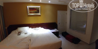 Номер у нас был хороший, просторный, с видом на дорогу(. Мы просили дать нам номер с видом на бассейн, но сказали, что все номера заняты...Но, как оказалось, вид из окна нам был не нужен, т.к. шторы всегда были закрыты, чтоб не заходил жар от солнца. У нас в номере не закрывалась дверь и не работали 2 лампочки, сказали на ресепшен и нам сразу же всё починили. Кондиционер у нас работал, но в некоторых номерах с ним были проблемы. Уборка в номерах хромает, и нам постоянно не докладывали полотенца.