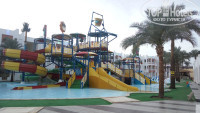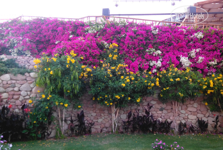 Территорию отеля можно условно поделить на 3 части: "семейная" возле водных горок и амфитеатра, в котором проводят вечернюю программу, условно спокойная территория возле главного здания и небольшого подогреваемого бассейна, большой бассейн ближе к пляжу. Территория ухоженная, больше каскадная, подняться или спуститься можно по лестницам или по дорожкам, по которым ездят машинки обслуж.персонала.