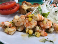 В самом отеле давали очень вкусную красную рыбу - форель и семга (при том в различных вариациях (жареная, тушеная, малосольная), креветки (очищенные и нет), раки (1 раза за 10 дней).