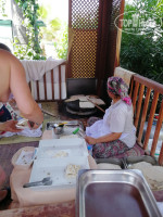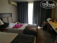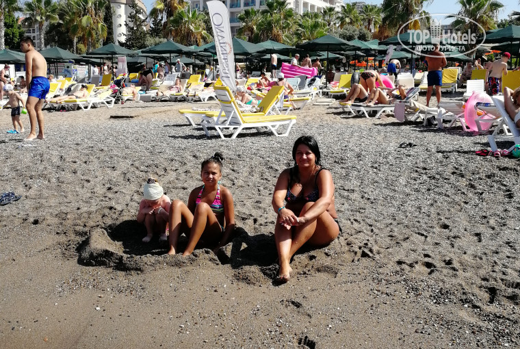 В этом отеле мы были первый раз.Приехали в отель в 7.30 утра заполнили анкеты надели браслеты и пошли на завтрак.Заселили нас только в 15.30 , в анкете указали чтобы по возможности заселили поближе к морю , так как бабушке тяжело.Номер как раз и дали на самой горе около корпуса Жасмин , сил уже не было никаких спорить и мы пошли в номер.Номер стандарт небольшой, 2 кровати и раскладушка прямо у дверей балкона , над ней висит старенький кондиционер.Пришлось передвинуть все чтобы была возможность открыть дверь балкона.Я понимаю что самый разгар сезона, но мы ждали пока освободят номер, ждали 2 часа уборку в номере и.....Под кроватями песок, на балконе листья,в душевой песок и камушки с моря, комплект полотенец не на троих.За почти 2 недели поменяли 1 раз белье, полотенца уже стали менять сами себе.Уборка несколько раз входила без стука даже, приходилось несколько раз выскакивать из душевой. Уборка заключалась только протиранием пола и выноса мусора.Убирались сами в итоге.Рядом с бунгало видимо было какое то помещение где они приходят на работу , утром громкие разговоры женщин , там у них посиделки .Утренние приветствия официантов на повышенных тонах , что было не очень комфортным с утра .Питание было хорошим , голодными никто не ходил.Рыба, мясо , овощи, различные гарниры , множество сыров.Очень много всевозможных сладостей, вечером мороженое.Есть детское меню и диет стол.Всегда можно было найти столик если приходить не прямо к открытию ресторана.Так же есть второй этаж, там всегда свободно, только еду приходиться носить.Официанты вежливые и шустрые , выполняли свою работу на 5 . Единственное что было не очень приятным, когда входишь в ресторан , где большие круглые столы или столы под вентилятором и без солнца, пытаешься присесть, а тебе говорят " резервед")) , и приходят " свои турки" семьями или любимчики.Шеф повар умничка , очень позитивный человек.Очень сильная детская анимация, девочки молодцы,детки в восторге.Море шикарное , заход первые 2 метра песочек с мелкой галькой, потом как ступенька вниз и тебе по горло.Без обуви больно ходить по горячим камням, желательна обувь , коралки..или беги как страус.Лежаки можно найти было всегда, и в 8 и 10 утра, а после 14 так вообще все почти уходили на обед и кто куда.Еще один минус так это навязчивые услуги на пляже местных ( магазины кожи и текстиля, экстрима , недвижимости , кукурузы и пива итд....) очень нагло некоторые себя вели.Когда говоришь что ты приехал отдыхать а не по магазинам ходить и вежливо отказываешься, тут звучит фраза ," типа быстрее бы вы уехали и освободили номер для потенциальных покупателей"" , я была в шоке .....нет слов....На территории есть магазинчики с сувенирами , сладостями, чаем, кофе, текстилем, пляжными принадлежностями и тд.Через дорогу тоже маркет и аптека, в 20 минутах ходьбы рынок Алара базар.принимают доллар, евро ,рубли охотно., банковские карты.Пляжные полотенца под депозит 5$ , второй ключ от номера депозит 10$, взвесить багаж перед отъездом 1$, обмотка чемодана.Полотенца прекрасные продают в магазине за 1$ ими и пользовались , они отлично стираются и быстро сохнут, пляжные махровые тяжёлые , долго сохли.На рецепции девочки русскоговорящие , интернет в лобби бесплатно , медленный правда.Платный за 2$ в сутки тоже не шустрый.Так отель не плохой , с хорошей зелёной территорией , морем, хорошей аним