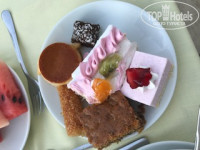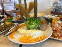 Территория совсем небольшая, но чистая и ухоженная.Бассейны тоже чистые и никаких инфекций никто не подхватил, хотя про лето 2017г слишком много писали в интернете. Хочу особо отметить кухню. Это важно, поскольку ездили с ребенком. Не могу отметить какого-то особенного разнообразия, но питание достойное и качественное. Все очень свежее, достаточно вкусное. Шефы выходят в зал и контролируют выкладку пищи и её количество. Вкусная утренняя выпечка. Жаль, что гриль из мяса был только пару разу.В основном всегда курица, очень редко говядина. На праздник 1 раз готовили баранину.Поэтому ставлю 4. Сладкое очень разнообразное и вкусное.Ребенок был очень доволен.