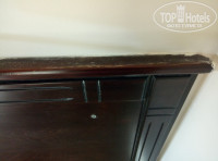 Теперь о номере. Он был на пятом этаже с ужасно низкими потолками, о которые я ударялась головой. Был телевизор, маленький, но он работал, правда мы им так и не пользовались. Холодильничком тоже. Пошарпаная мебель и двери - я бы не акцентировала на этом, если было бы чисто. А так, открываешь шкаф - а там пыль, смотришь на изголовье кровати все аналогично, а когда мы сдвинули кровати... волосы, пыль, какие-то таблетки валяются, в ванной ситуация такая же. Причем, в ванной комнате место для душа прикрывает короткий огрызочек шторки, и вся вода льется на пол, т.к. место для слива слегка внизу и все. Был кондиционер, он работал, но параллельно своей работе пускал слезу. Вода капала на пол, а я еще додумалась поставить под него сумку (не хотела разбирать вещи, т.к. нам же пообещали заменить номер через 2 дня). Дальше подходишь к балкону, а там - штора в рыжих пятнах от ржавчины или чего еще, я даже не знаю, дверь естественно старенькая и в плесени, но ужас подстерегал именно на балконе. Пепельница, которую никто не убирал (окурков нет, но пепел остался), стулья и стол - к ним нельзя притронуться, не то, что сесть. Такое впечатление, что на жирный налет осела пыль. И какая-то непонятная рыжая грязь в углу балкона.
