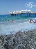 5. Море-тёплое, лазурная вода. Но волны. Кто умеет плавать, с пирса можно зайти и без проблем искупаться. Мы больше на берегу в волнах игрались. Пляж галечный и величина гальки и заход в море меняется. В первый день нашего пребывания берег был в крупной гальке, заход был резкий. На следующий день волны усилились, крупную гальку всю смыло, осталась мелееееенькая и заход в море стал пологим.