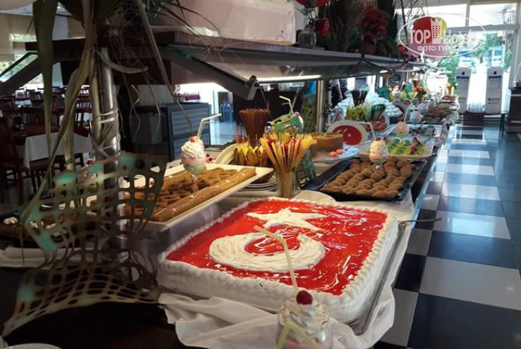 Все аниматоры стараются, чтобы гостям было интересно и весело и это у них отлично получается. Питание в отеле в целом хорошее. Лично мне не хватало только фруктов. Мясо, рыба, курица есть всегда. Много зелени, овощей. Утром за доп плату в 1 доллар можно заказать свежевыжатый сок или кофе по-турецки. Очереди бывают, но если приходить к открытию их нет. На территорий отеля работает замечательный фотограф! качество фото отличное. Прям всем советую фотосессию на память. Он всегда подскажет нужные позы, и сфотографирует вас с самой удачной стороны. Отзывчивый и приятный в общении. Я осталась очень довольна результатом. В отеле отдыхают семьи с детьми. Почти все русскоязычные.Мой ребенок ежедневно купался с удовольствием. Лично я всегда находила лежаки, на пляж мы ходили поздно, после 10 утра. Подводя итоги: хороший отель, с отличным персоналом, с нормальным питанием. Я осталась довольна