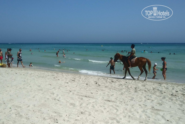 Сам пляж грязный из за огромного количества животных проходящих мимо и опрожняющихся на песок. Специфика Туниса ..Песок и море на входе в верблюжьих фекалиях. На углу отельного пляжа савлка мусора см фото и стоянка верблюдов издающих своеобразный запах.Мимо пляжа ходят многочисленные туристы из отелей без пляжа приезжающие на маршрутках и пытаются залечь на свободные лежаки ,охранник пляжа если не спит их гоняет,но осторожнее с вещами и телефонами ..территория пляжа проходной двор. Часто особенно по утрам скачки на лошадях..проскачут и детей не заметят у воды. Фото есть Море теплое,градуса на 2 теплее Турции но с фекалиями,на любителя.Взрослые отплывут подальше где по чище,а дети в кале верблюдов .
