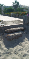 Пляж у бассейна есть и неплохой,лежаков хватает.полотенца или платно или свое. Пляж на море узкая полоса грязного песка с убогими лежаками.Места хватает.Вход на пляж через два болтающихся бревна ,смотри фото можно подвихнуть ногу,очень неудобно и показывает убогость отеля и наплевательское отношение к инфраструктуре и туристам.моглибы за столько лет сделать ступеньки.