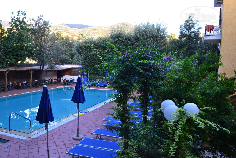На ужин ДВА блюда (всегда есть паста) и десерт на выбор (мороженое или арбуз). Не считая холодных овощей. Бассейн с термальной водой, небольшая, но очень милая территория. Пешком можно дойти до порта минут за 15, автобусы останавливаются в 5 минутах ходьбы от отеля.
