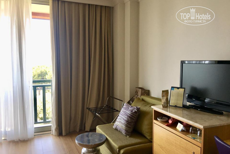 Сам номер светлый, с приятным интерьером, есть все необходимое, кондиционер работал исправно, минибар заполненный при въезде и пополняемый водой впоследствии бесплатно, бесплатный сейф. Очень интересное решение по санузлу – отдельное помещение с раковиной, зеркалом и обширной столешницей для умывания, отдельное помещение с душем и туалетом. Из принадлежностей в номере: халаты, тапочки, шапочки, гель для душа и шампунь и прочая мелочь. Телевизор, фен, шкаф с вешалками и подсветкой – все присутствует. При необходимости, можно запросить бесплатно утюг с гладильной доской, очень удобно, спасибо.