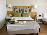 У отеля достаточно обширный номерной фонд, у нас был самый простой номер Life Room without Balcony, имейте в виду, что все номера без балкона расположены в конце главного корпуса. Без балкона – не совсем верно, он есть, маленький, во вне к нему крепится сушилка для вещей. Из нашего номера был просто волшебный вид на территорию и море, закаты потрясающие.