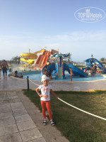 ТЕРРИТОРИЯ: не маленькая и не большая, можно сказать компактная, сам отель стоит П-образно, по мне так все удобно все доступно. большой бассейн от 120 до 225 глубина, 1 совсем для малышей с теневым навесом, дальше детский бассейн с горками и по-больше бассейн с большими горками. Лежаки с зонтиками везде. Бары, перекусы в доступности по всей территории.