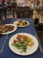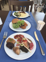 Ужин: жареная рыба, невкусная индейка) , мы кушали куриные ножки , один раз жарили форель, запечённая картошка, нут , фасоль, овощи, фрукты (сливы, персики, апельсины, груши, яблоки, виноград). В конце зала стол с соусами и салатами, от которых тоже всегда стоит кислый запах.