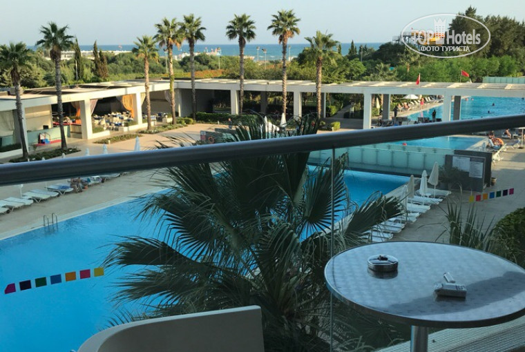 Дальше немного о территории. Большая и удобная, где расположен большой бассейн от отеля и до моря. Там и для детей и сидячие места с гейзерами и глубокий бассейн на 150 см и поменьше на 120-130, далее отдельный бассейн для больших огромных горок, (горки реально высокие, спину не царапают, спасатели адекватные, за веревки девушек не дергают при спуске и внимательно следят за безопасностью на горках. И последний бассейн с искусственными волнами (но маленький для взрослых). Все чистые, вода не сильно в хлорке. Пока идешь до моря, можно столько всего понабрать. Там вам и мороженное разных вкусов и вафли с разными наполнителями, бургеры картошка фри куриные ножки алкоголь и напитки, коктейли из свежих фруктов и кукуруза (за отдельную плату). На самом пляже бара к сожалению нет. Точнее есть, но там кофе и соки самообслуживание. Но есть бар недалеко. Шезлонгов на море и возле бассейнов куча, всегда можно было найти место, даже на пирсе. Море чистое, не глубокое, комфортная для взрослых глубина. Песок чистый, гальки не так много, в основном песок. Каждый день проходят игры в бассейне и конкурсы (веселые старты) командные. Всяких занятий много, и танцы живота с аниматором Хуйсеном, который отлично танцует и хорошо проводит аквааэробику. Там же бесплатные игры в большой теннис, настольный теннис, баскетбол, пляжный волейбол, водное поло боча и тд. Но тренажерный зал никакой почти. Кто часто занимается, там так себе. Гантель мало и максимум 10кг. Дорожки то работают то нет. Скамья для жима, блины хотя бы есть) и еще 2-3 тренажера. На территории есть фотограф, русская девушка, проведет фотосессию за небольшие деньги. Кухня выбор большой, но половина еды остывшая и холодная. Вечерняя программа хорошая, частно приезжали иллюзионисты. Раз в неделю проходит пенная вечеринка, на счет дискотек это не в этот отель. Диско клуб как и писали уже здесь, пахнет ужасно, народ туда не ходит. На пенной в основном дети резвятся. В клуб можно доехать до Ауры или в Soho. На территории отеля есть всякие площадки для детей с горками, качели и детская комната. За территорией отеля множество маркетов и базаров. Не нужно далеко ехать. Алкоголь местный, по вкусу так себе, не сравнимо с импортным. Напиться сложновато но возможно) Хорошее Пиво как я понял Эффес Пилснер. Всегда свежее холодное, но рядом с пляжем в баре иногда в пиве чувствовалась вода. Так же неплохое вино. На обычных барах есть водка, джин, раки, пиво и пару ликеров с сиропами. Все остальное в лобби баре в самом отеле. (Ром, "бейлис", вермуты, виски, водка и тд.). Турков в отеле примерно 70 процентов было в это время. Русских процентов 20, остальные немцы англичане румынцы эстонцы и иран. Вообщем за все это просят не такие уж большие деньги. Соотношение цена-качество думаю соответствует по моему мнению. Еще раз спасибо персоналу отеля за хороший отдых, привет Хусейну ;)) Kirill and Di.