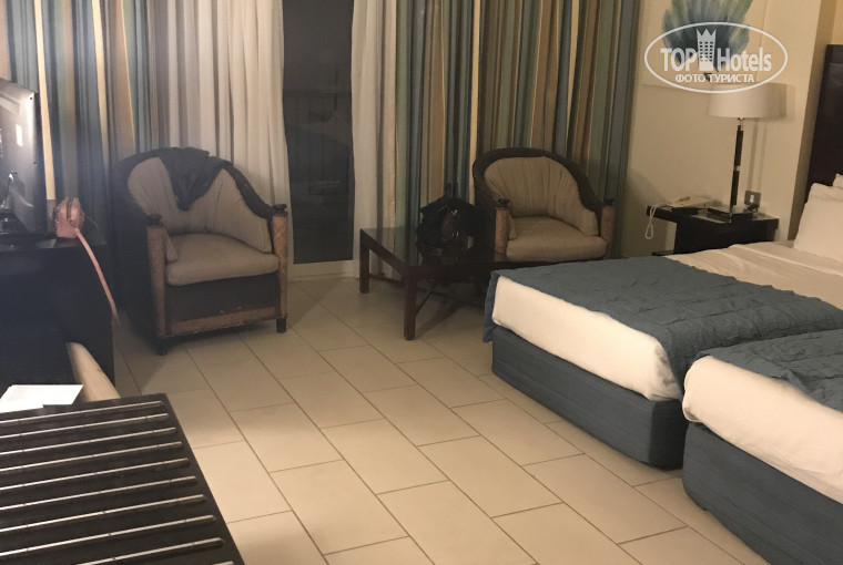 Добрый день ! Отдыхала с компанией молодых людей в начале сентября 2018 . Первое впечатление было сомнительное , прилетели вечером уже было темно , поселили в не убранный номер , но сам номер был большой в современном стиле все , большая плазма , балкон , чайник , холодильник, кондиционер - все работало отлично ! Позвонили на ресепшн с номера дали втык на повышенном тоне и через минуты 3 прибежал убирающий и каждое пятно на которое указали убрал , на следующий день приходили по несколько раз спрашивали все ли у нас хорошо , ничего ли нам не нужно (что очень удивило) . На протяжении отдыха убирали хорошо , оставляли 1$ каждый день. Персонал в общем приветливый, везде улыбаются и спрашивают как дела ))). Территория зашибенная , очень большая и зелёная , много цветов , не смущает что нужно пройтись к морю минут 5 так как идти по такой территории одно удовольствие (есть с чем сравнить). По территории ездит каждые 3 мин открытый автобусик если уж слишком лень идти ) множество бассейнов (с горками и Релакс зона бассейн 16+ без детей , играет Релакс музыка , после обеда самое оно ) . Пляж огромный , хватает лежаков на всех , заход отличный как для детей так и для взрослых , прям возле берега плавают куча рыб видов 10, есть понтон , огромный плюс что риф не длинный и не нужно идти 5-7 минут по понтону чтобы поплавать на глубине . Риф восхитительный, брала дайвинг в отеле очень понравилось ! Еда как для Египта хорошая , разнообразие есть , рыба тушенная , жареная , говядина , курица в разных видах , очень вкусная выпечка у них и крем супы. Десерты тоже отличные , через день дают медовые десерты вроде наших огурчиков . Крабы есть но мы их не поняли , на вкус и цвет ). В общем отель очень понравился , особенно территория , соответствие цены и качества ! Рекомендую !