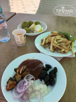 В 11 рядом с пляжем, готовят очень вкусную картошку фри(я хоть и не сторонница такой еды, но поверьте она чего вкусная))), так вот люди толпятся ждут фри, но если придти в 11.15-11.30, поверьте ни толкатели ни очереди не будет.