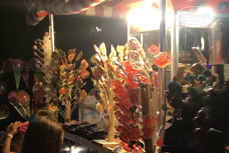 На территории есть магазин со всем необходимым: от брелков с магнитиками до надувных кругов. Недалеко от отеля, буквально, 5 минут пешком, есть большой базар, где мы закупались подарками и сувенирами. Только обязательно нужно торговаться!