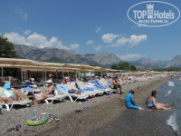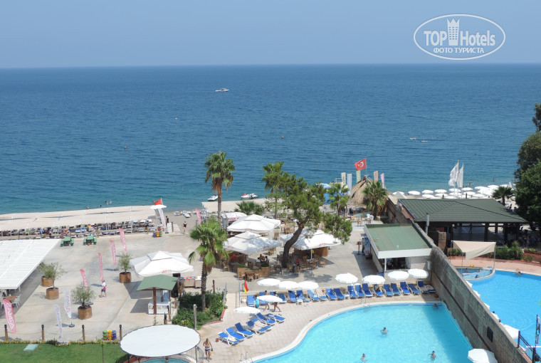 С этим отелем все очень неоднозначно. Мы были в этом отеле с 12 по 19 августа. Размещение. Брал с небольшой доплатой ( около 2 т.р.) основной корпус. Есть еще через дорогу корпус анекса ( подземный переход). Размещение не очень, на 3. Номер 3128. Сам номер хороший, но старый кондиционер. Довольно громкий. Номер чистый. Уборка как только снимали табличку "не беспокоить". Очень мешали сплит системы этого и соседнего отеля, работающие и днем и ночью. Причем, это касается практически всех номеров главного отеля с нашей стороны. Поменять номер не получилось. На тихой стороне было все занято. Менеджер каждый раз отсылал на следующий день, пока не плюнули и не забили. Хотел апгрейдить свой номер с доплатой до семейного, но и их в центральном корпусе не было, а в корпус анекса через дорогу переезжать совершенно не хотелось. Питание. Первые два дня есть было нечего. Точнее еды было много, НО, еда была очень низкого качества. Из мяса только нагетсы ( на вкус как картон), гриль в виде куриных спинок без мяса и т.д.. Народу было немного, но разбирали все мгновенно. Далее блюда не докладывали. 3 с минусом - это максимум за питание в первые два дня. На третий день все резко поменялось. Приехало пол отеля турков плюс туристы из других стран. Как потом рассказали местные, это турецкие чиновники с центра страны. Питание сразу стало на порядок лучше. Можно сказать на твердую четверку ( а некоторые дни 4+). Появилось много блюд из мяса, увеличилось число гарниров. Даже те же нагетсы стали совершенно другого качества. Появились арбузы и дыни ( до этого только дубовые сливы и невкусный виноград). Официанты следили за количеством еды на подносах. Достаточно быстро приносили блюда которые заканчивались, и так до конца времени, отведенного на еду. НО!!! Приезжие турки ведут себя отвратительно,можно сказать по свински. Стало очень грязно как в столовой, так и на пляже. Причем, что удивило, такое свинское отношение у них ко всему, в том числе и к своим соотечественникам, работающим в отеле. Большой плюс этого отеля в том, что очень быстро был нанят дополнительный персонал. Через несколько дней выскребли весь отель, столовую и пляж. И убирали в течении всех дней постоянно с утра до вечера. Отелю поставил бы твердую четверку ( но только в последние дни нашего отдыха). Море. А вот море и пляж отеля на 5. Очень мелкая галька. Ходить комфортно и без тапок, но только часов до 10 и после 17-00. Днем галька разогревалась до обжигающего состояния. Море чистое. Пару дней до обеда слегка штормило, что ни как не сказалось на чистоте воды. Вечером, после ужина, с 8-ми до 10-ти из воды практически не вылезали. ИТОГ. Вернулись бы мы в этот отель, вряд ли ( если только цена будет уж очень низкой). Учитывая все выше написанное, отель ближе к 3*. Есть вероятность, что попадешь когда мало народу, как у нас в первые дни, и отдых будет испорчен плохим питанием и очень посредственным сервисом.