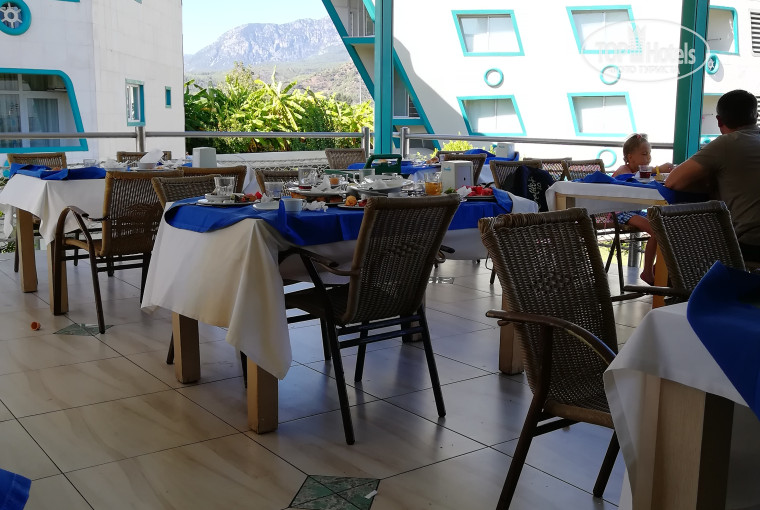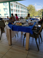 - Ресторан. Вот это для меня шок. Принципе и отзыв пишу только из-за него. Вроде большой и мест много и еды достаточно, вот только, чтобы занять столик надо приходить или к открытию или к закрытию. В середине периода работы ресторана найти свободный стол не реально. Мы ходили к закрытию, мест много, но со столов посуда не убрана и то количество официантов, которые стараются все убрать, явно не хватает. Они физически не успевают.Чистой посуды не хватает,не хватает стаканов и кружек для чая. В последние дни нашего отдыха в ресторане был напряг с питьевой водой. Мне посоветовали сходить взять воду в лобби.