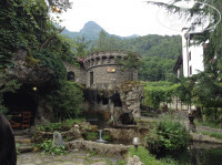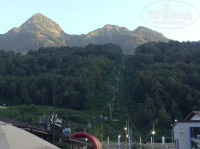 Были немного удивлены, что за столь небольшие деньги попали в достаточно нормальный отель, так как из 7 ночей мы планировали там только переспать перед отлетом , а на остальное время уехать в Сочи, поэтому и не читали особо куда заселяемся. Приехали уже поздно, но даже в сумерках было приятно увидеть Отель в виде замка с подсветкой, витыми балконами, журчащей речкой. Утром ещё больше поразились территории и живописному интерьеру, а два небольших прудика с форелью заставили задуматься о рыбалке! Форель здесь можно поймать самим и вам её сразу же приготовят. Рядом есть магазин, сувенирная лавка, Альпика, Газпром чуть дальше. Вечером здесь прекрасно можно погулять и неторопясь дойти до Красной Горки и прочих увеселительных заведений и получить массу положительных эмоций. В номере чисто, балкончик небольшой, телевизор (хотя зачем он вообще нужен на отдыхе), сейф, холодильник, фен. Нет кондиционера, но на Красной Поляне не особо жарко, по крайней мере мы открыли балкон и не умерли от жары )