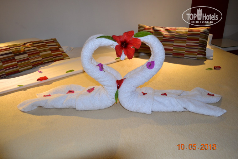 Прибыли вечером, после ужина. Нас подхватили, накормили. Номер новый без нареканий, с верандой и всем необходимым. Уборка ежедневно и лепестками роз, лебедями, духами и всей прилагающейся атрибутикой. Жена была в восторге! Персонал доброжелателен и услужлив. В ресторане рекомендую Тунисскую кухню. Одно только не удобно - в ресторане не подают крепкий алкоголь, только вина. Вина достойные, на французский манер. Рекомендую в баре заказывать цедратин! Производится только в Тунисе небольшими партиями, больше нигде не продается. Будете улетать, купите в дютифри цедратин и финиковый ликер, такого вы больше нигде не купите. Всем хорошего отдыха!