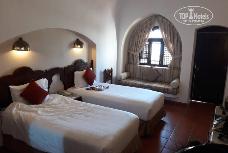 - Номера. Номера - аутентичные. Выполнены сугубо в египетском стиле. Достаточно оригинально. Но на любителя. Не стандартное оформление номера, на мой взгляд. Резные окна, деревянные кровати, НО с хорошими ортопедическими матрасами))))) В общем, оригинально. Лично мое мнение, что номера стоит немного отреставрировать. НО когда выходишь на балкон - ты забываешь обо всем на свете, потому что перед тобой открывается потрясающая панорама всего Шарм Эль Шейха и красивейшего моря. На это можно смотреть вечно!!!