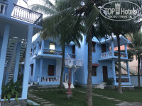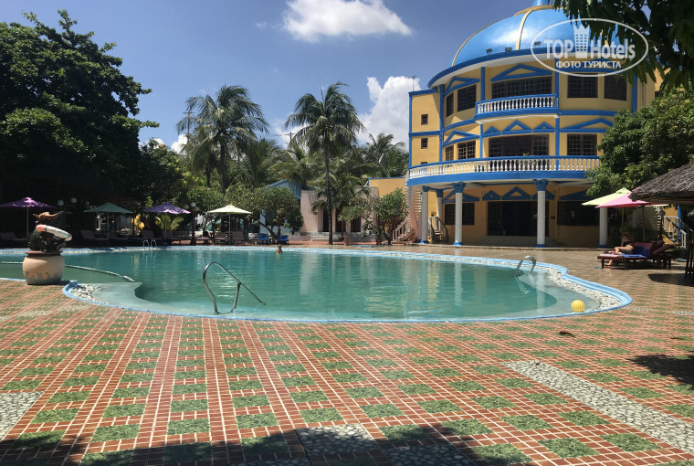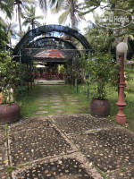 Территория достаточно зеленая, много цветов, кокосы падали с пальм, мы их вскрывали и пили.