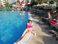 Теперь можно перейти и к плюсам: АНИМАЦИЯ- отдыхали в Турции три раза(не считая этого), но такой анимации нигде не видела. Ребята отработали на 200%!!Респект вам. Дневная анимация всегда разнообразная , вечерняя анимация тоже крутая, людей собирался целый зал. РЕСТОРАН- на мой взгляд еды дофига и причем разной. Всю не смогла попробовать) мне кажется это просто нереально. Те люди которые писали по поводу еды ,что типа нечего есть, мне не достается, однообразие и т.д. , то я на это спрошу: дорогие граждане,а Вы не зажрались ли часом?))ВОДНЫЕ ГОРКИ- это супер-мега развлечение, вне зависимости сколько тебе лет.Очень потрясно и здорово что на территории отеля есть свой мини-аквапарк,зачет!КУЧА БАССЕЙНОВ-тоже зачет, т.к. огромной бассейн разделен на несколько зон: дети отдельно, взрослые отдельно.Я считаю это правильно и логично.ВЫПИВКА- бармены умнички)) наливали от души, "не бодяжили" и причем наливали сразу же по нескольку стаканов (хотя об этом я их не просила))ДИСКОТЕКА-да народу было мало, но если есть желание танцевать, то по желанию можно собрать народ,верно? Поэтому в этом плане мы не терялись и почти каждый вечер собирали толпы народу на танцполе (к нам даже приходил народ из соседнего отеля "КАРЕТА")ПЕРСОНАЛ- почти что все говорят на русском языке, если есть какие то замечания, то сразу же их устраняют,приветливые,позитивные и просто классные (P.S.-ребята,держитесь и не обращайте внимания на орущих тётенек на ресепшене, видимо они не знают что такое корреткное общение с людьми, увы-это Россиия)