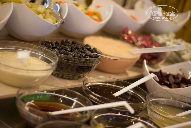 Рестораны и еда: питались в основном в главном ресторане. Утром очередь за яичницей и омлетом. Но круассаны побеждают всё! Обед обычный, ужинать очень приятно на открытой веранде! Обслуживать нас никто не спешил, но нам и не надо было. Принести себе по бокалу пива в состоянии сами. Было всё и рыба, и мясо, и птица! Салаты, соленья, овощи, фрукты! Короче голодными не будете точно!Спасибо представителю администрации - внимательной и отзывчивой Дениз, она между прочим записывает на бесплатное посещение рыбного ресторана a-la carte.