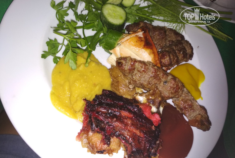 Ужин- очень разнообразен,на барбекю- люля,котлетки,мясо кур,подливка с мясом,рис, макароны,овощи